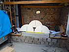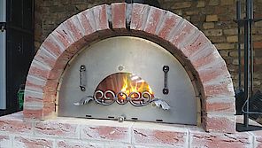 komplette Fläche mit Schamottmörtel glatt verputzt. Die Oberfläche war einfach zu rau, ich hatte eigentlich vor die schöne gelbe Schamottoberfläche auch als Backfläche zu nutzen, aber das werde ich später lieber mit Schamottplatten lösen, die da dann drinliegen.