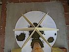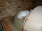 3 Schubkarren Sandnegativ aus der Kuppel entfernt. Die letzten Eimer/Kellen waren die schwierigsten, musste ja mehr als einen Meter in die Kuppel rein. Danach ganz kurz den Abzug getestet, für gut befunden und den Beton erst mal ruhen lassen.