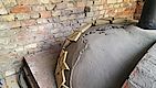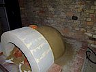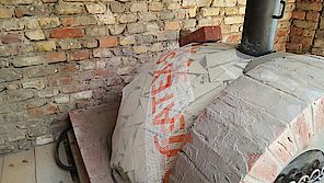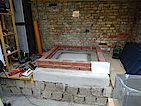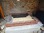 Schamottsteine ebenfalls mit Schamottmörtel auf die Dämmung geklebt und verfugt.