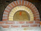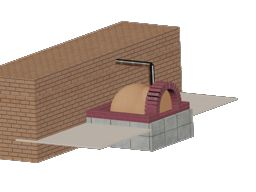 Fast rund. Die Öffnung für den Schornstein habe ich mit einem aufgeschnittenen 100mm KG Rohr ausgespart. Somit steht das 120mm Ofenrohr dann auf der Betonkuppel und ein Stück auf dem inneren Portalbogen.